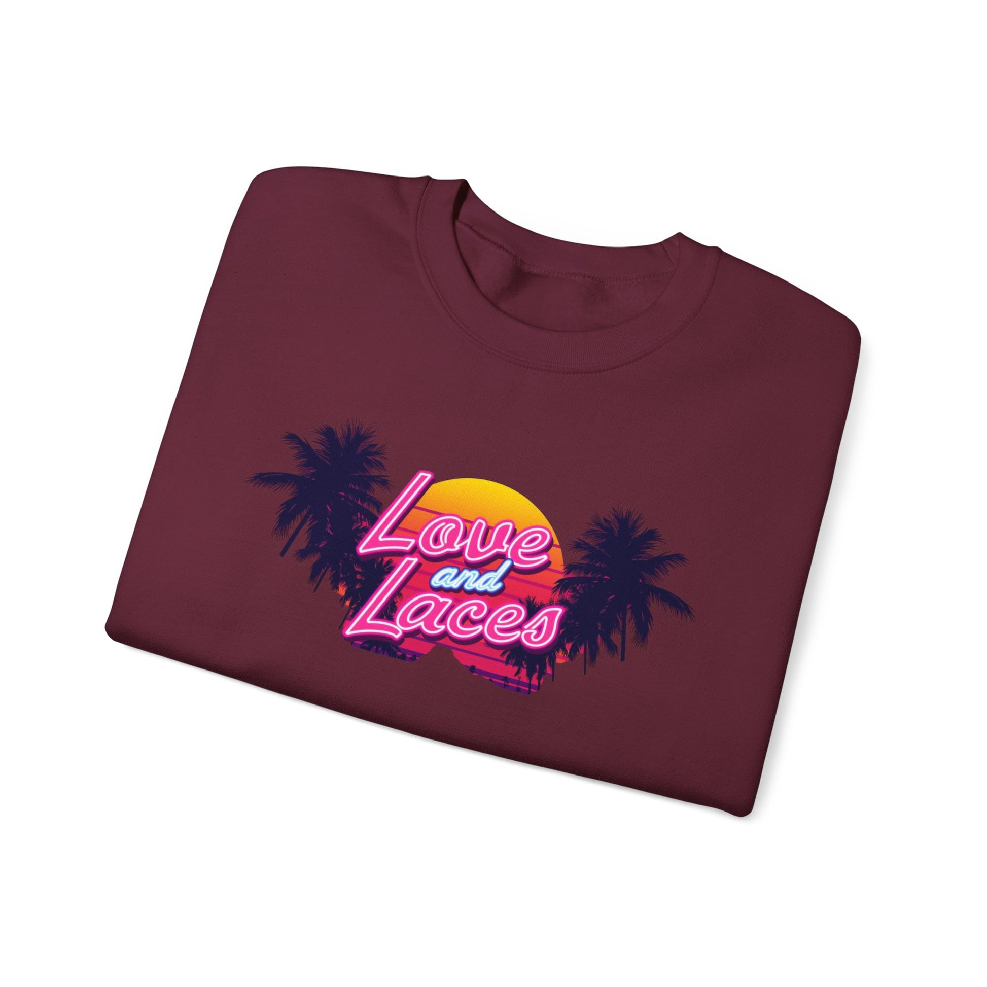 Crewneck Sweatshirt — "Love and Laces" Retro Palm Beach Graphic
